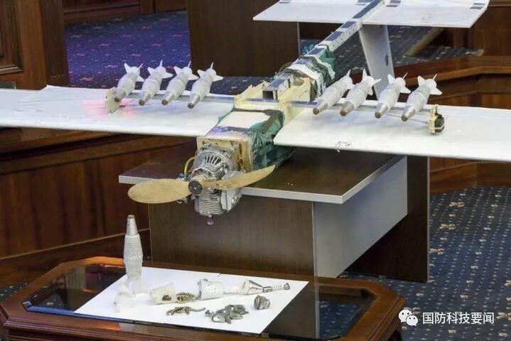 ▲袭击俄罗斯叙利亚基地的一架无人机,可以看到安装在翼下导轨上的IED。