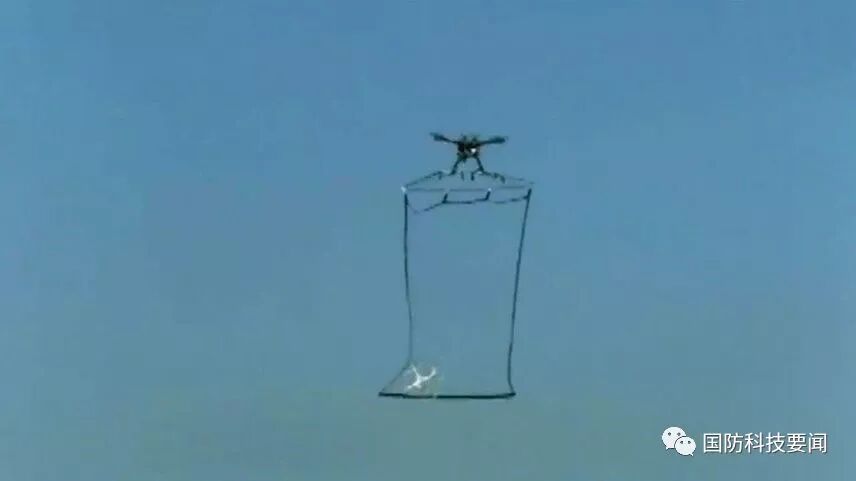 ▲NowThisFuture视频截图,显示东京警视厅使用多旋翼机在半空中捕获非法无人机