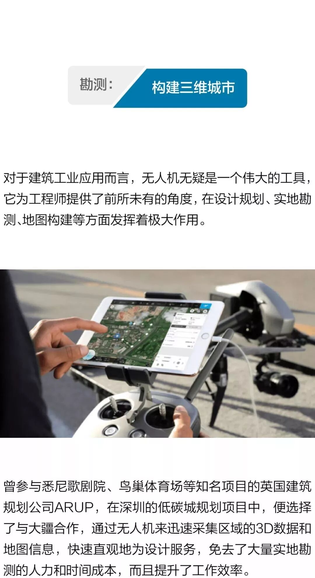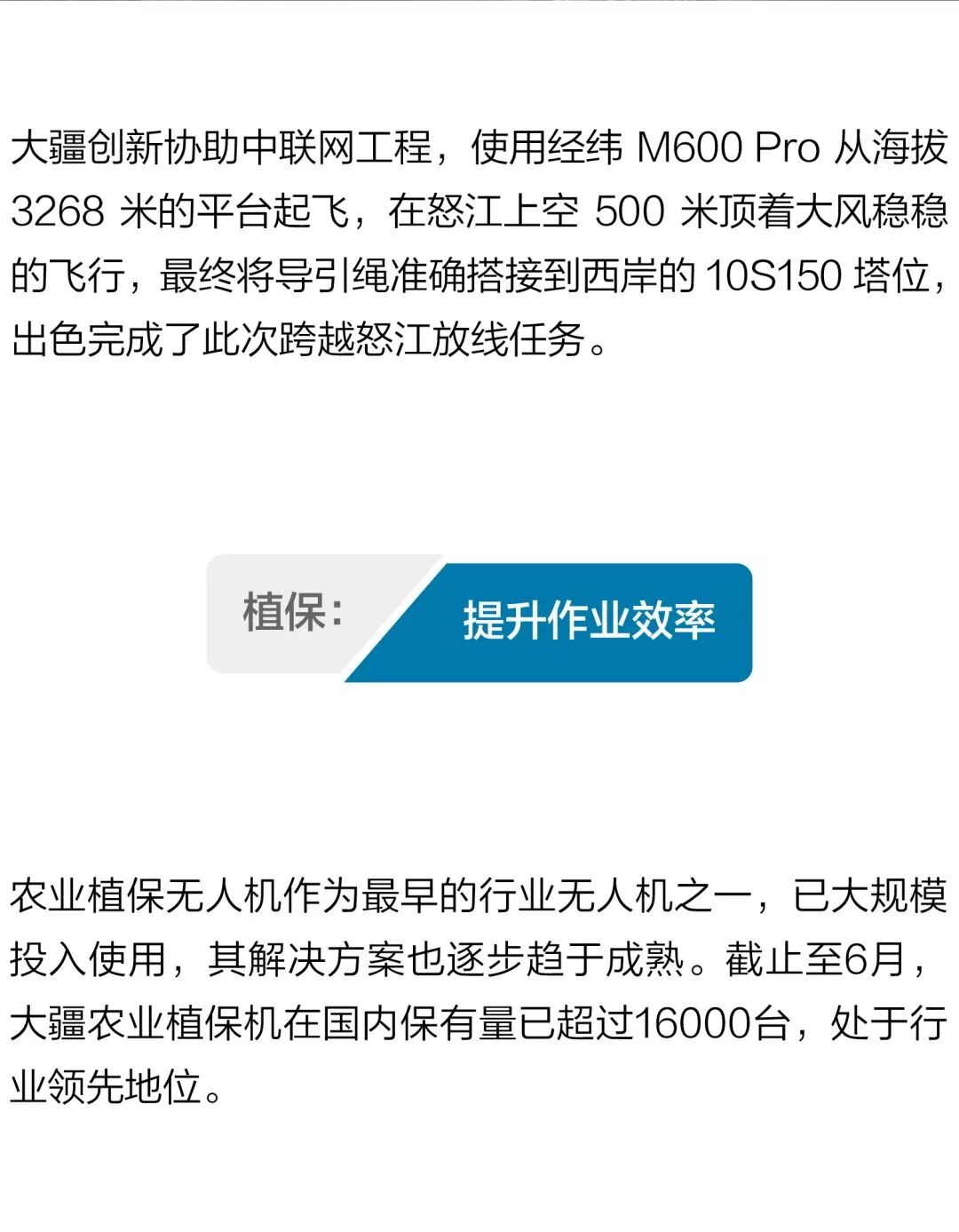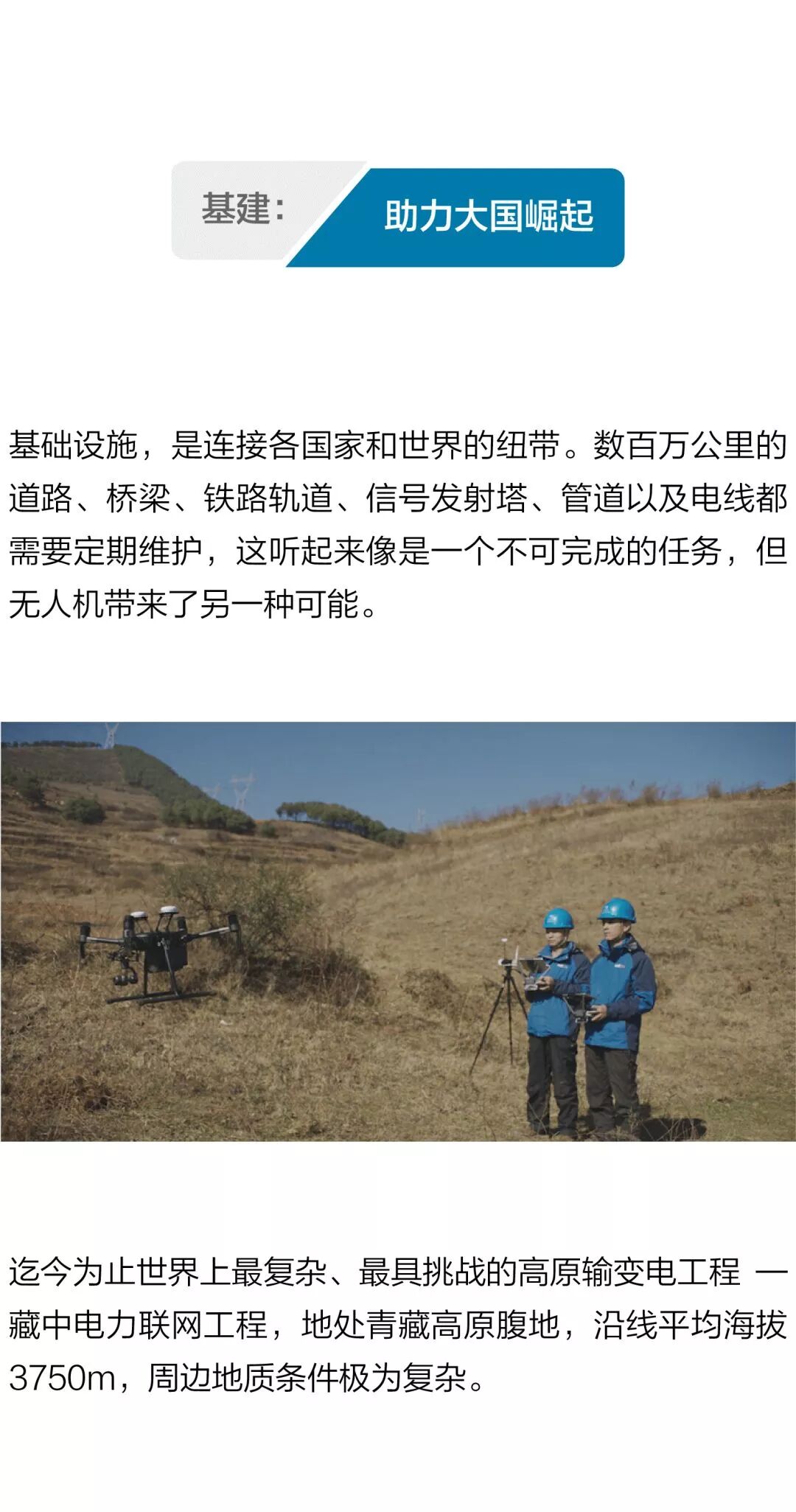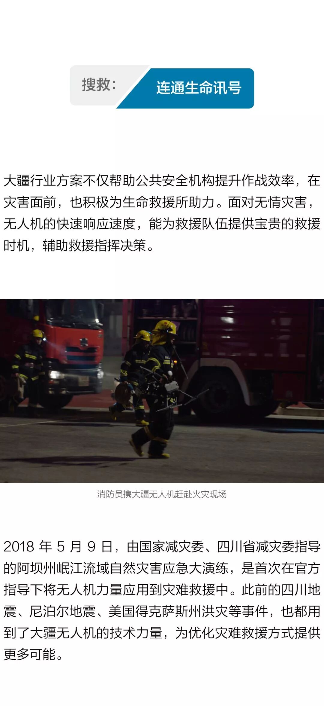 除了以上这些领域,在能源、消防、通讯、公益等方面,大疆无人机都在积极探索并发挥作用,推动世界的进步和改变。