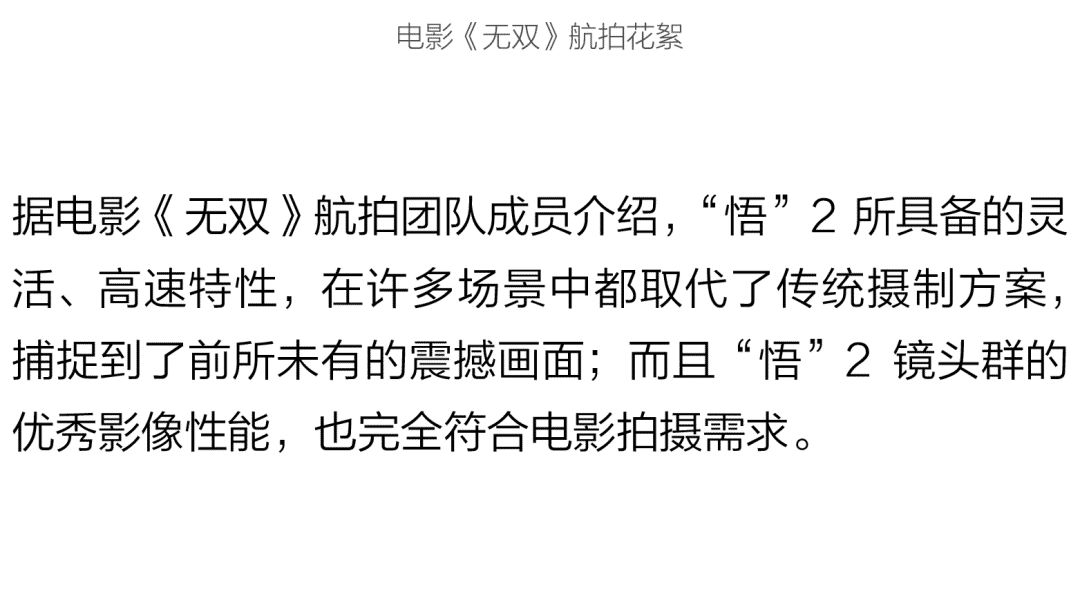 随着无人机及其影像技术的发展,航拍在影视界的广泛应用已屡见不鲜。不久前,荧屏热映的《影》、《无双》等大片中,就有许多使用无人机拍摄的精彩镜头。