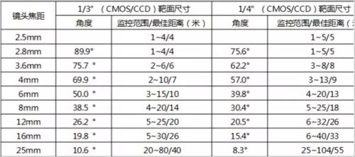 有关IPC监控距离与镜头焦距的关系可以参考下列图片:
